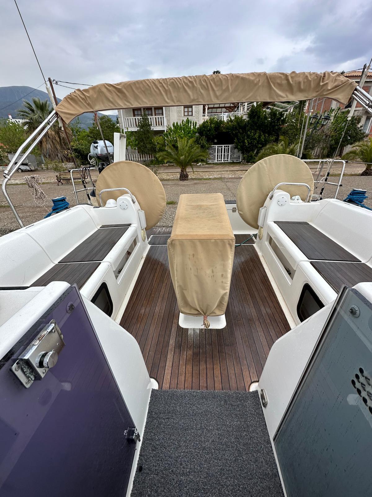 Mainsail rolls into the mast. Dinghy with 2.7 hp.